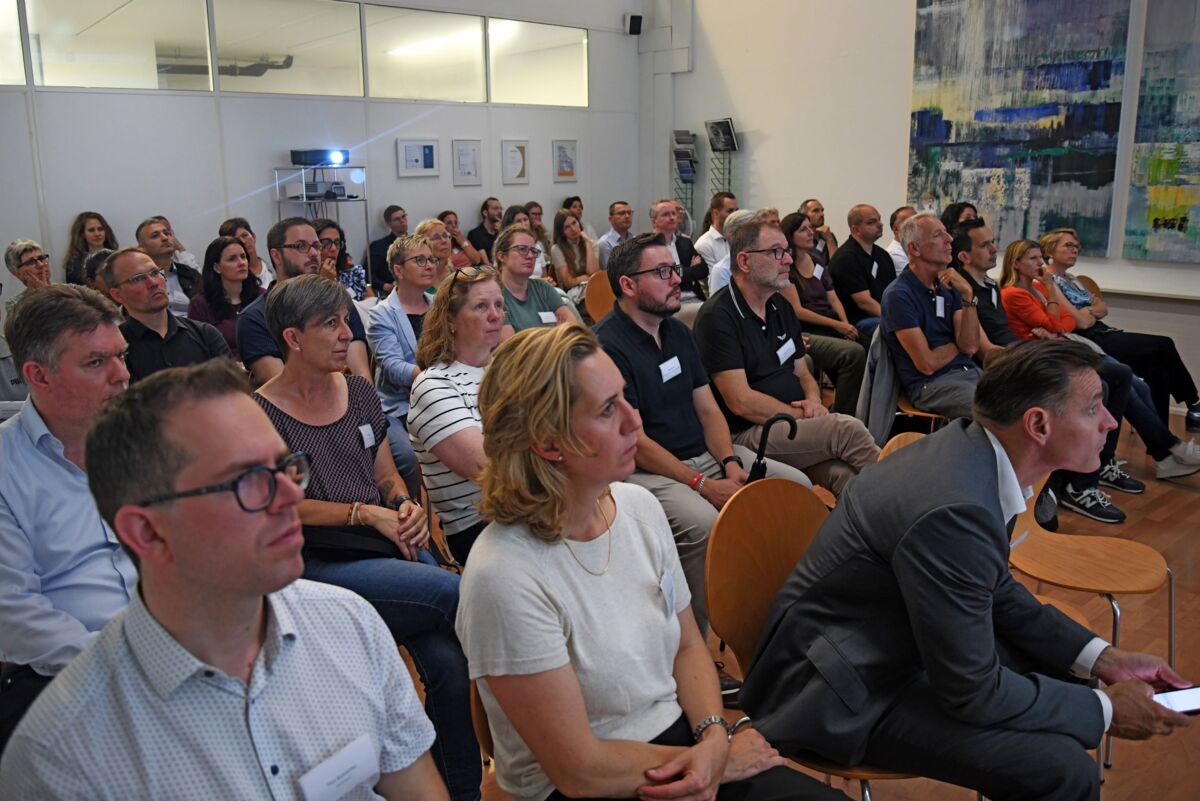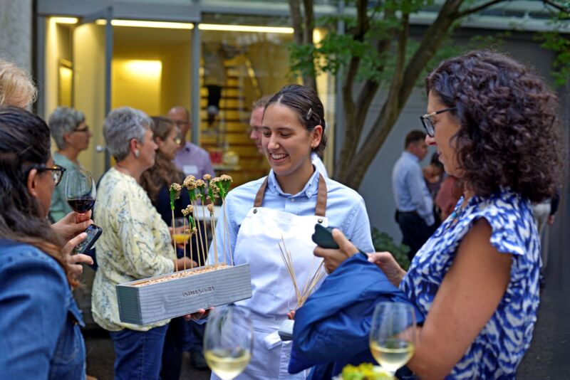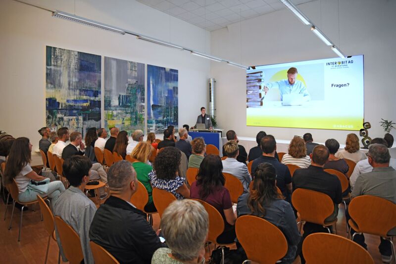 Im Anschluss daran nutzten die rund 50 anwesenden Gäste die Gelegenheit zum persönlichen Austausch im Innenhof von InterBit. Für das leibliche Wohl sorgte ein Apéro Riche, liebevoll zubereitet von albrecht.catering, der die gelungene Veranstaltung kulinarisch abrundete.